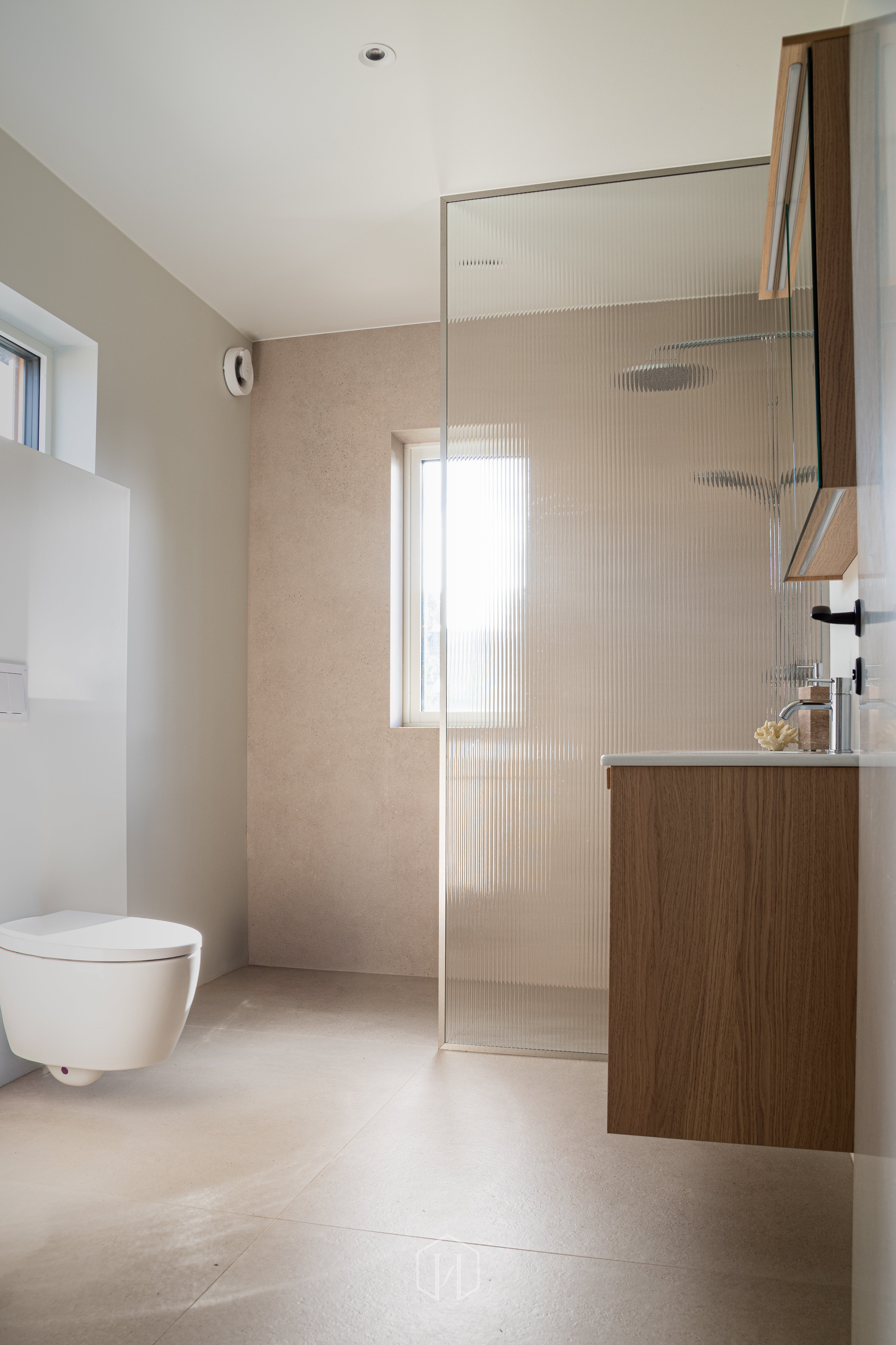 I dette baderomsprosjektet hadde kunden svært tydelig visjon, vedkommende definerte bevisst estetikken og funksjonene som skulle oppnås. Vår rolle var å veilede valgene, finjustere proporsjoner og tekniske detaljer samt foreslå løsninger som løftet helhet og komfort uten å endre prosjektets opprinnelige karakter.