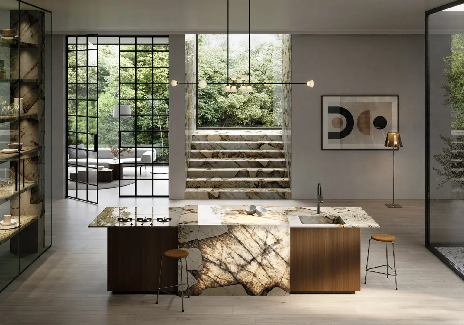 Altissima er en eksklusiv kolleksjon av naturstein som kombinerer tidløs skjønnhet med høy kvalitet og naturlig eleganse. Hver plate er unik, med sitt eget fargespill, mønster og uttrykk – noe som gir interiøret et særegent og sofistikert preg.