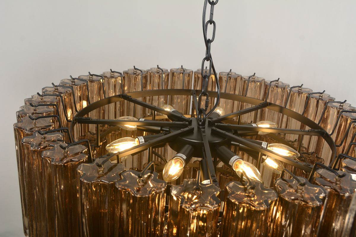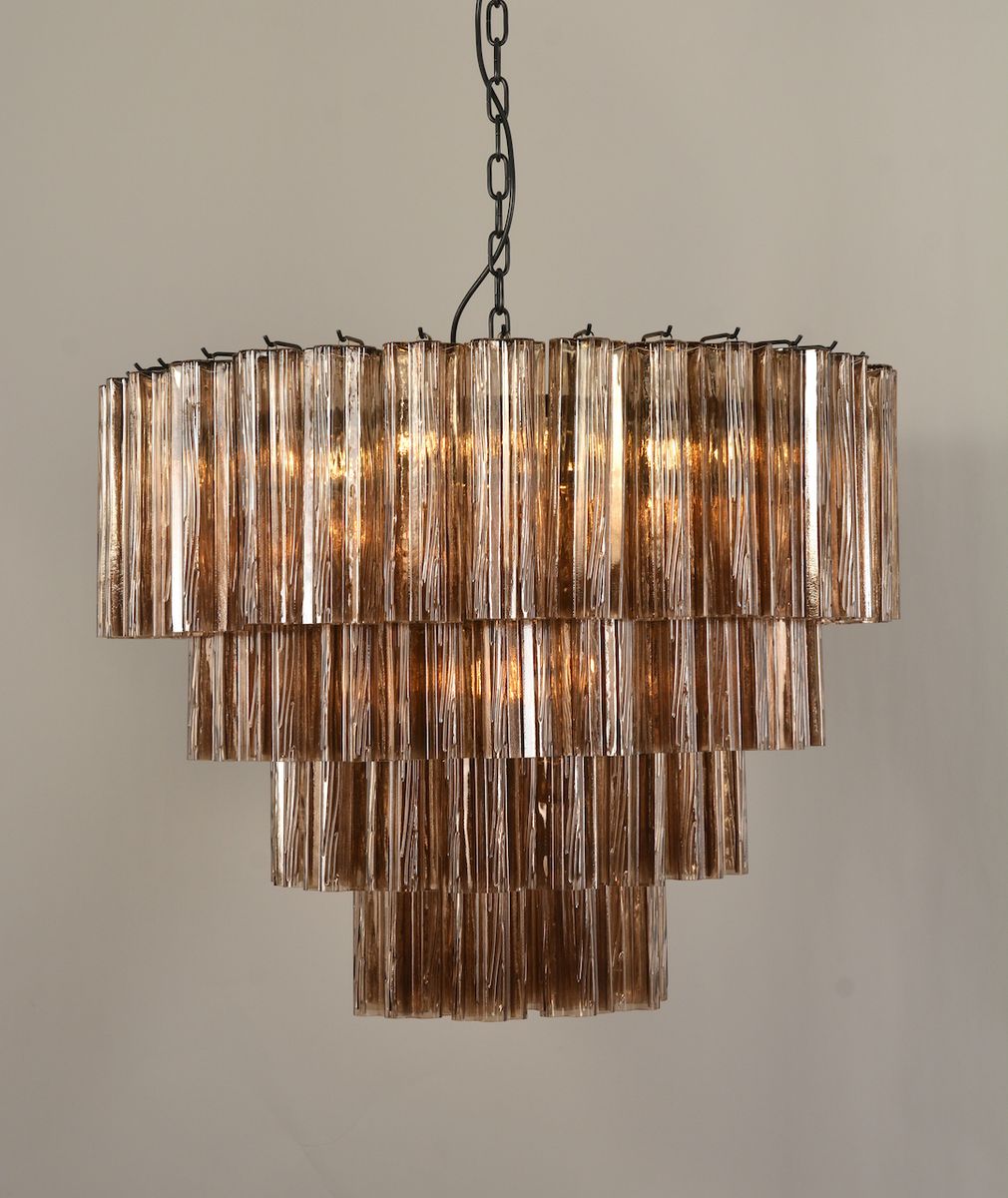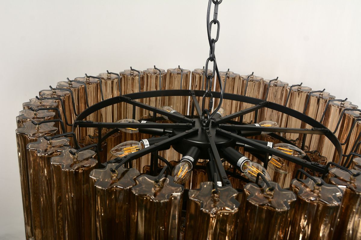 Skap et eksklusivt blikkfang i hjemmet med denne imponerende, håndlagde lysekronen. Med hele 83 munnblåste glassrør som reflekterer lyset på en spektakulær måte, blir lampen et naturlig midtpunkt og gir rommet et uttrykk av eleganse og særpreg. Enten den henger i stuen, spisestuen, soverommet eller gangen, vil den tilføre rommet en umiskjennelig wow-faktor.