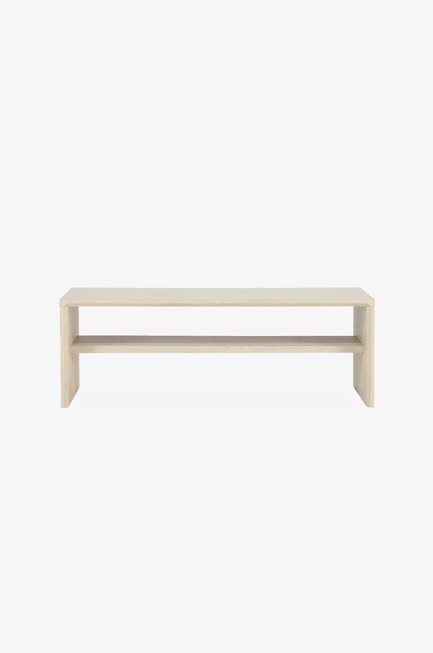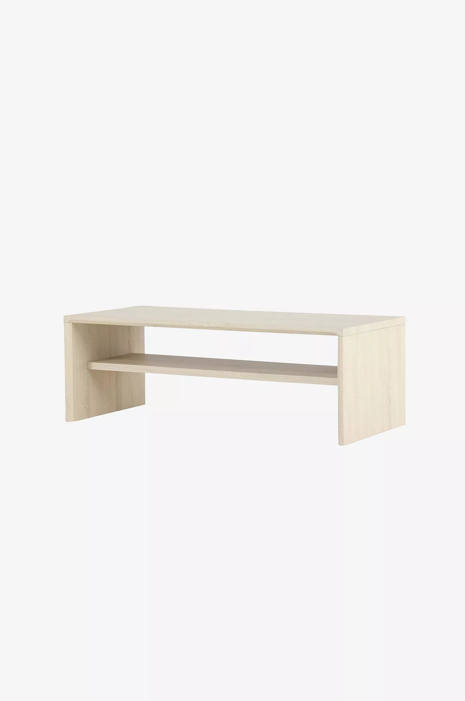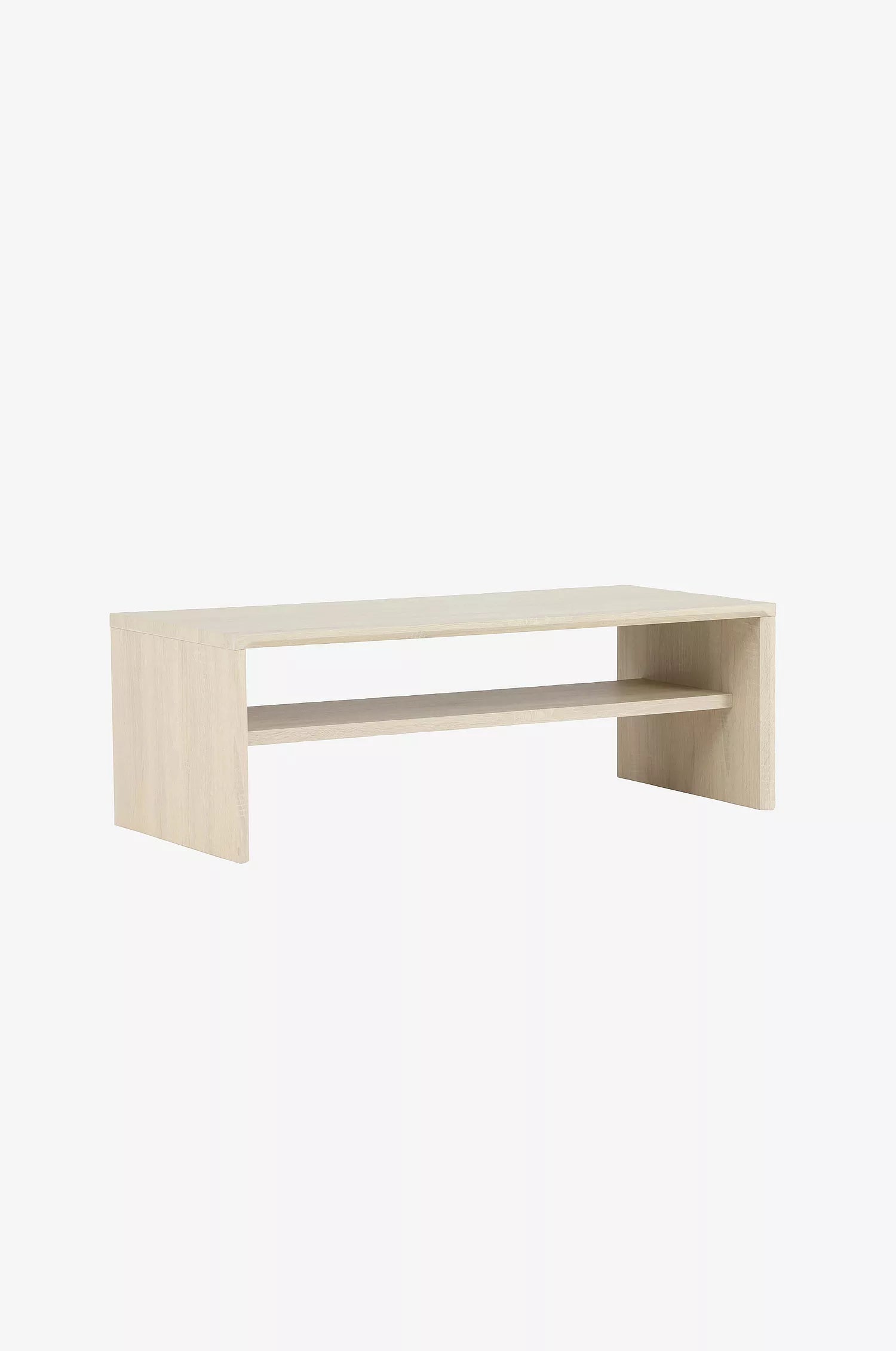 Bordet kjennetegnes av en elegant finish som gir et sofistikert og moderne uttrykk. Under bordplaten finnes en integrert hylle, ideell for oppbevaring av bøker, magasiner eller fjernkontroller, slik at overflaten holdes ryddig og fri for rot.