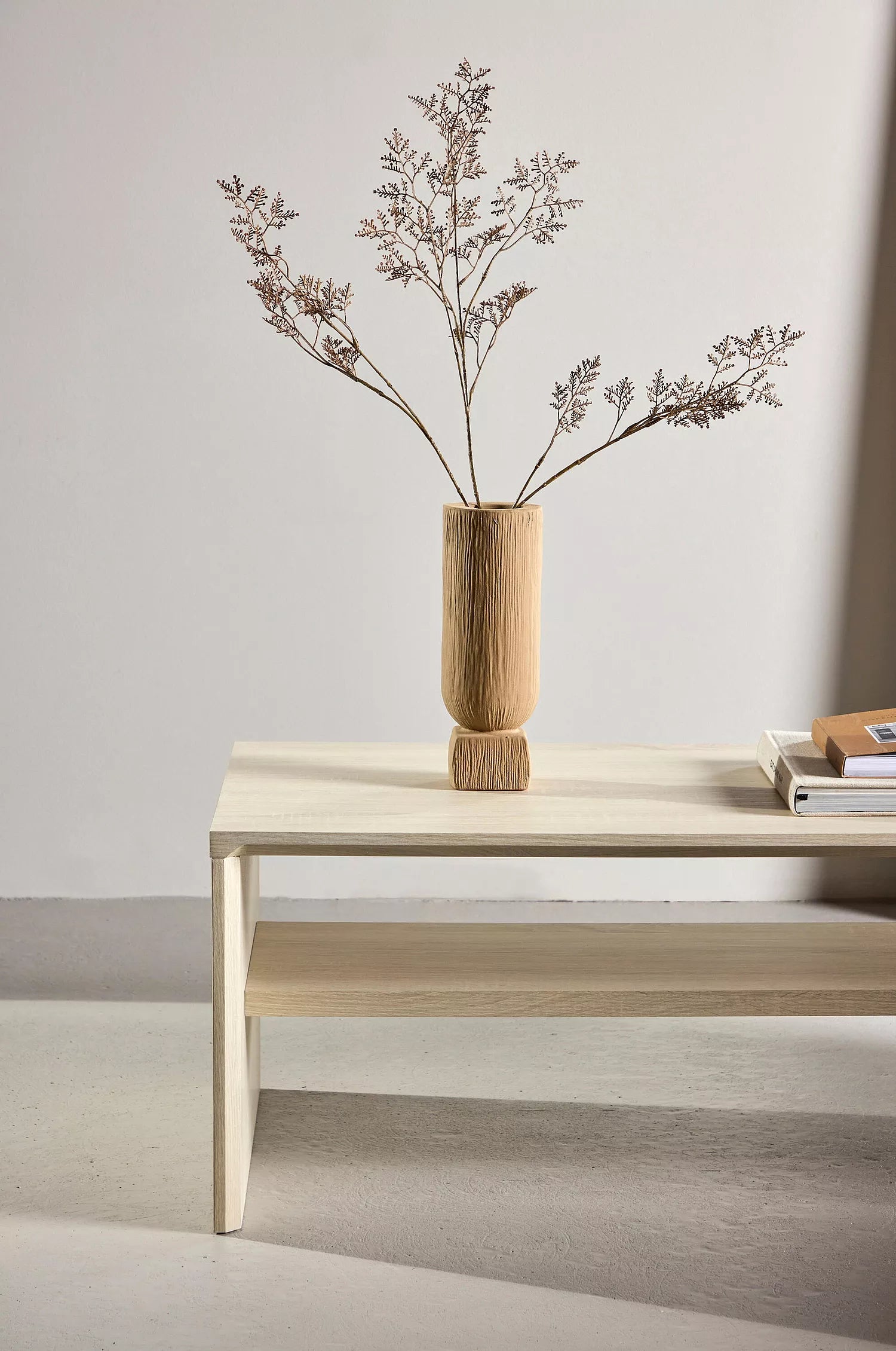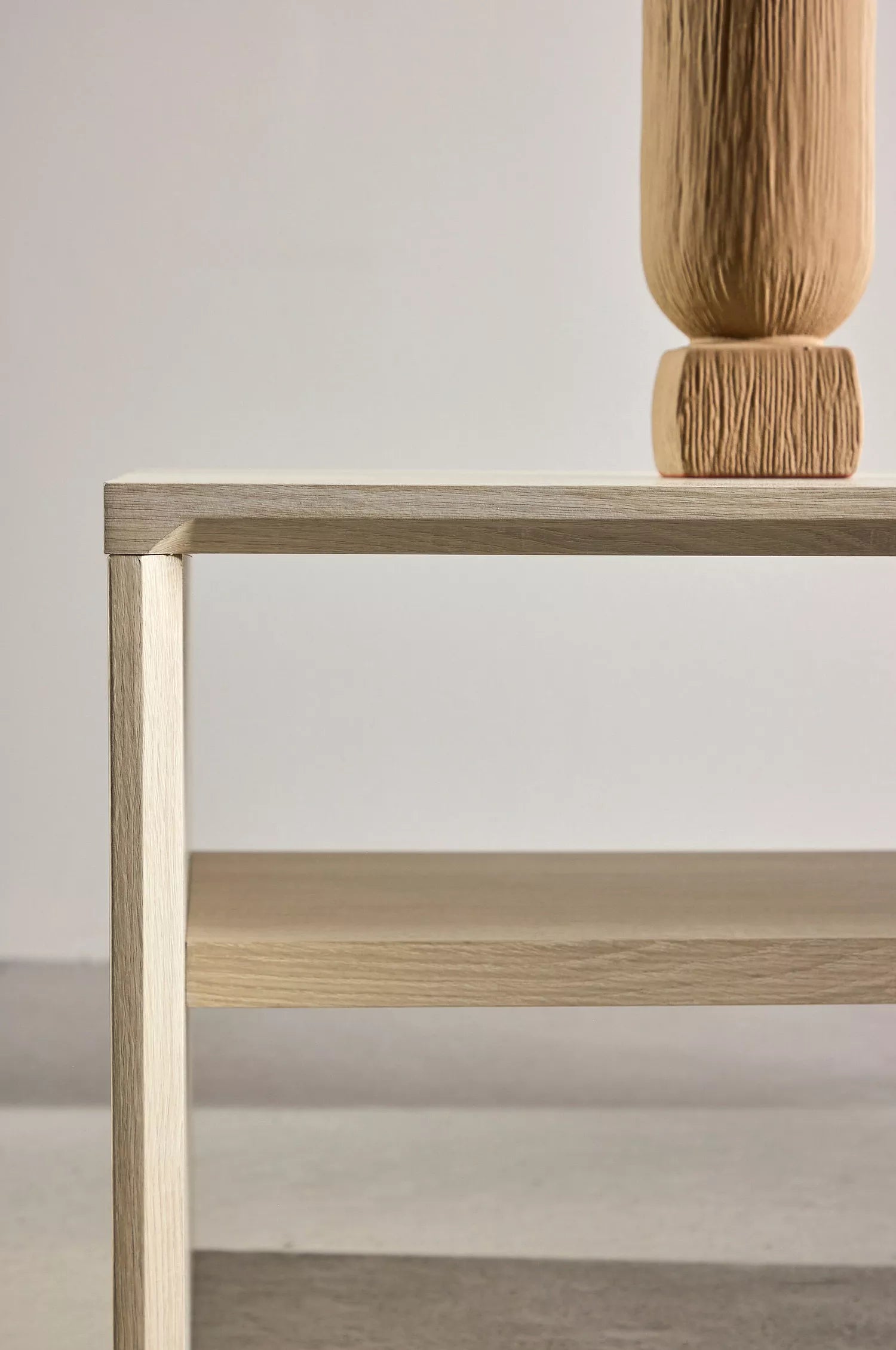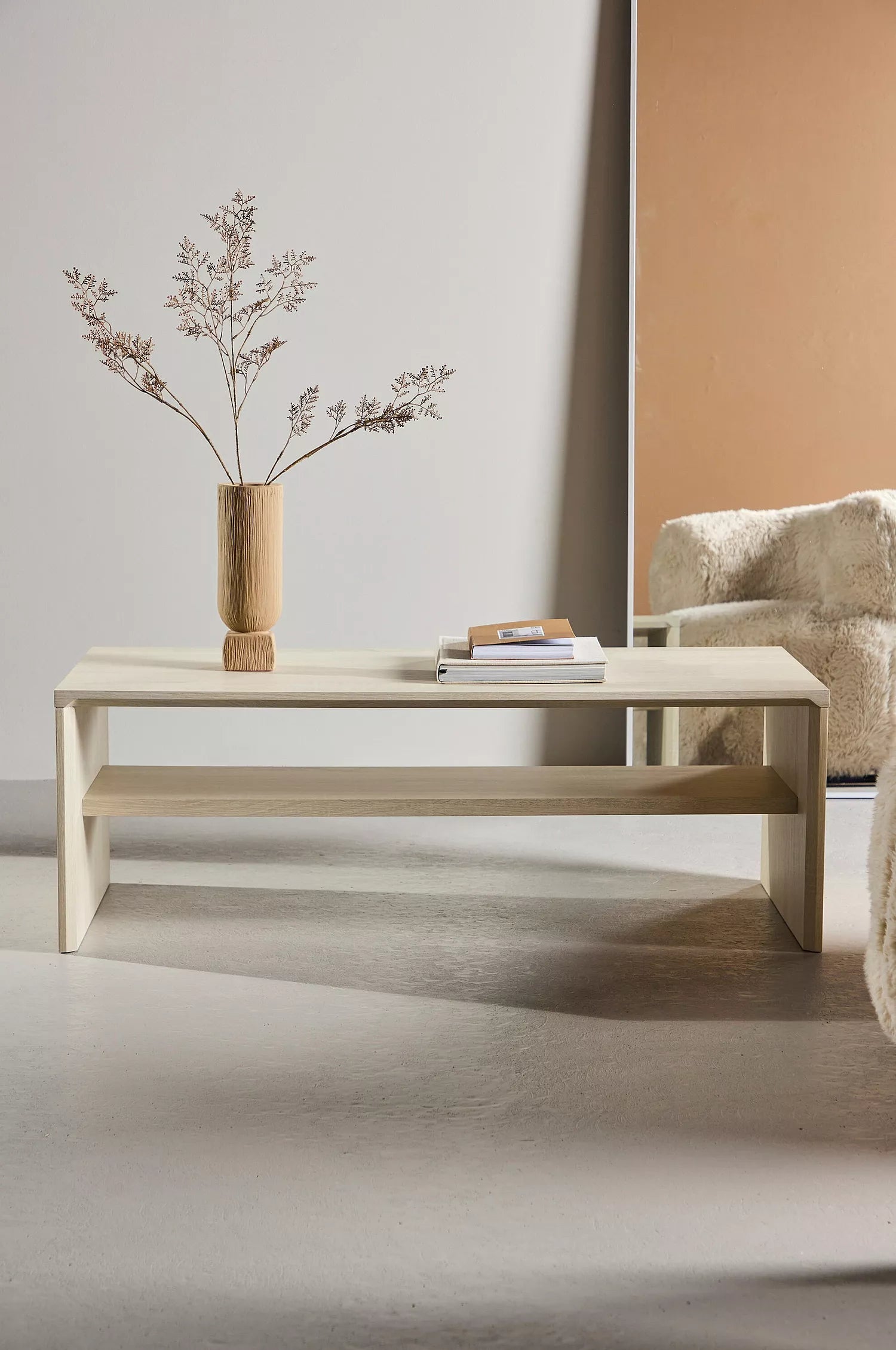Bordet kjennetegnes av en elegant finish som gir et sofistikert og moderne uttrykk. Under bordplaten finnes en integrert hylle, ideell for oppbevaring av bøker, magasiner eller fjernkontroller, slik at overflaten holdes ryddig og fri for rot.