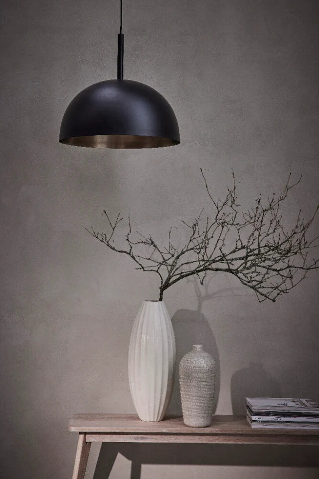 Sofille-taklampen har et imponerende og moderne uttrykk. Den er laget av metall og har et enkelt, stilrent design – sort utvendig og med gyllen innside. Med sitt minimalistiske preg passer Sofille perfekt inn i et interiør inspirert av moderne stilretninger. Hver lampe er håndstøpt, noe som gjør hver enkelt unik. Designet kombinerer det tidløse med det moderne, og gjør at lampen passer inn i alle typer hjem. Pynt med Sofille-taklampen og la den lune stemningen bre seg i rommet.