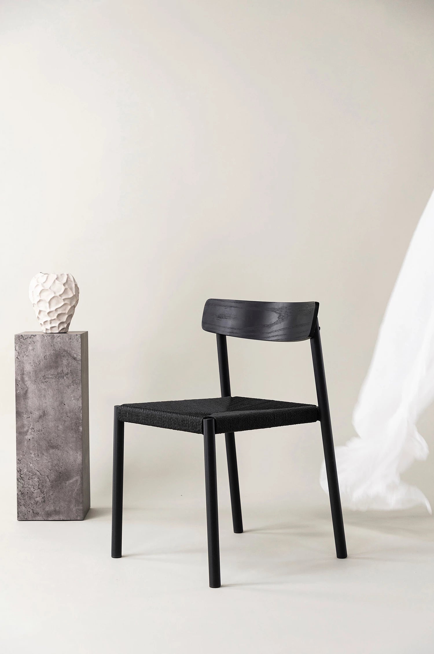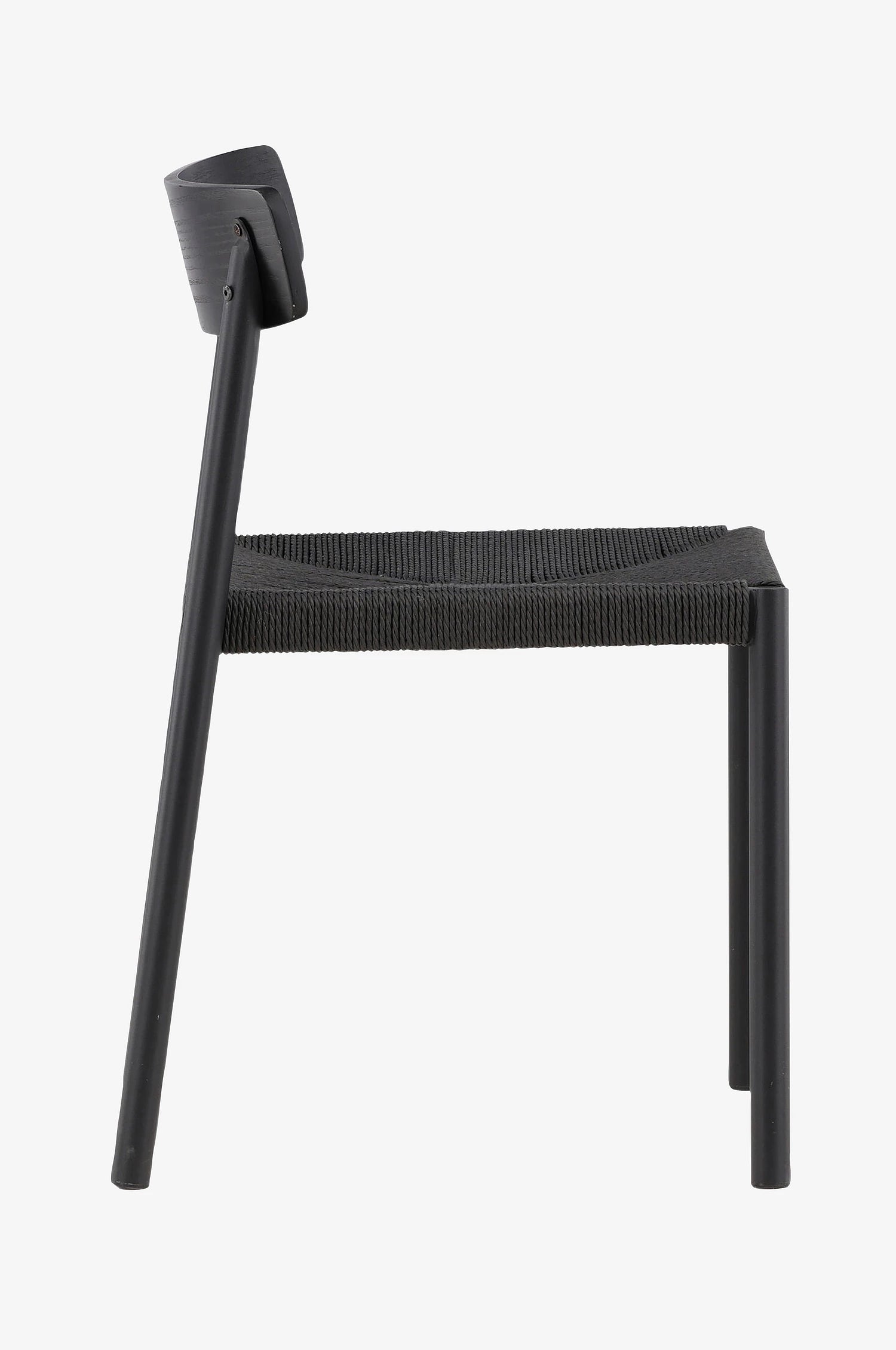 En klassisk spisestol med rygg i tre, sete i slitesterkt tau og lett utsvingte ben i metall. Den tradisjonelle utførelsen kombinert med skandinavisk design gir et moderne uttrykk til hjemmet, og stolen er enkel å flytte rundt. Passer perfekt sammen med et spisebord for hyggelige måltider med venner og familie.